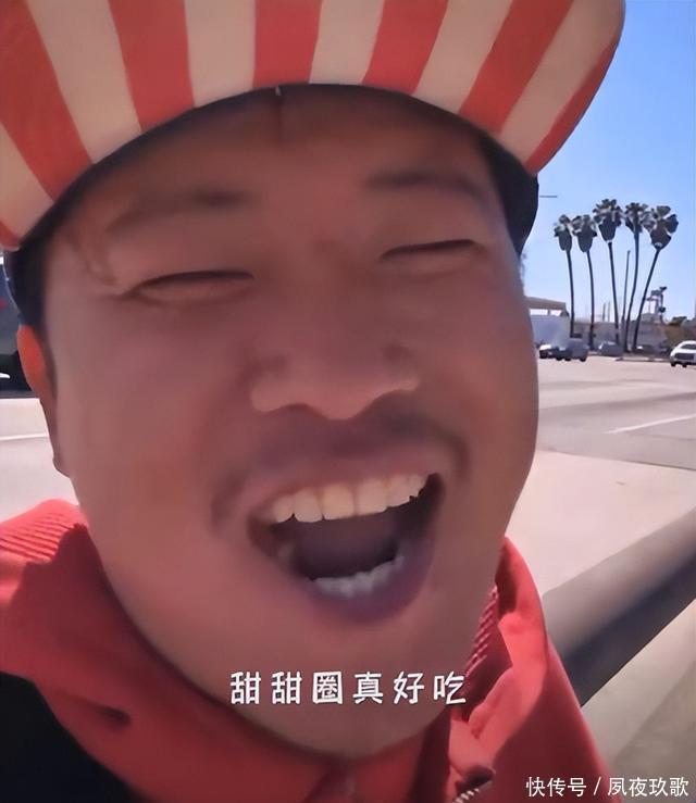 但他真正出名,还是因为2023年的那次甜甜圈事件,当时他兜里只有10美元,想买一个套餐,结果发现要20美元。 美国店员看他实在可怜,就送了他一个甜甜圈,这件事让他激动坏了,他在网上发视频,说这个甜甜圈太好吃了,美国太好了。
